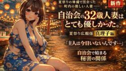 おっぱい 自治会の32歳人妻はとても優しかった。夏祭り広報係 真理子編 〜町内イベントの準備で距離が縮まった、優しすぎる主婦との秘密の夏〜【d_742777】【ワクドキ】